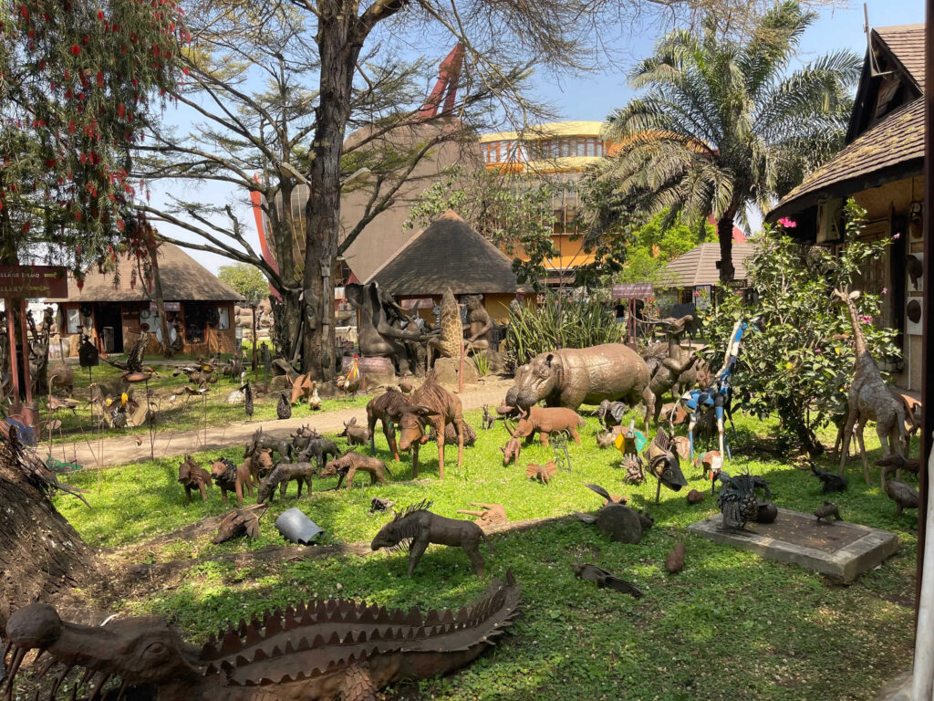 First stop was the Cultural Heritage Center. The grounds had many interesting metal sculptures of African animals. The main building displayed all different types of art from local artists – sculptures, paintings, and jewelry. There was information on a Jane Goodall project at the site as well – interestingly, she would pass away the next week while we were in Uganda.
